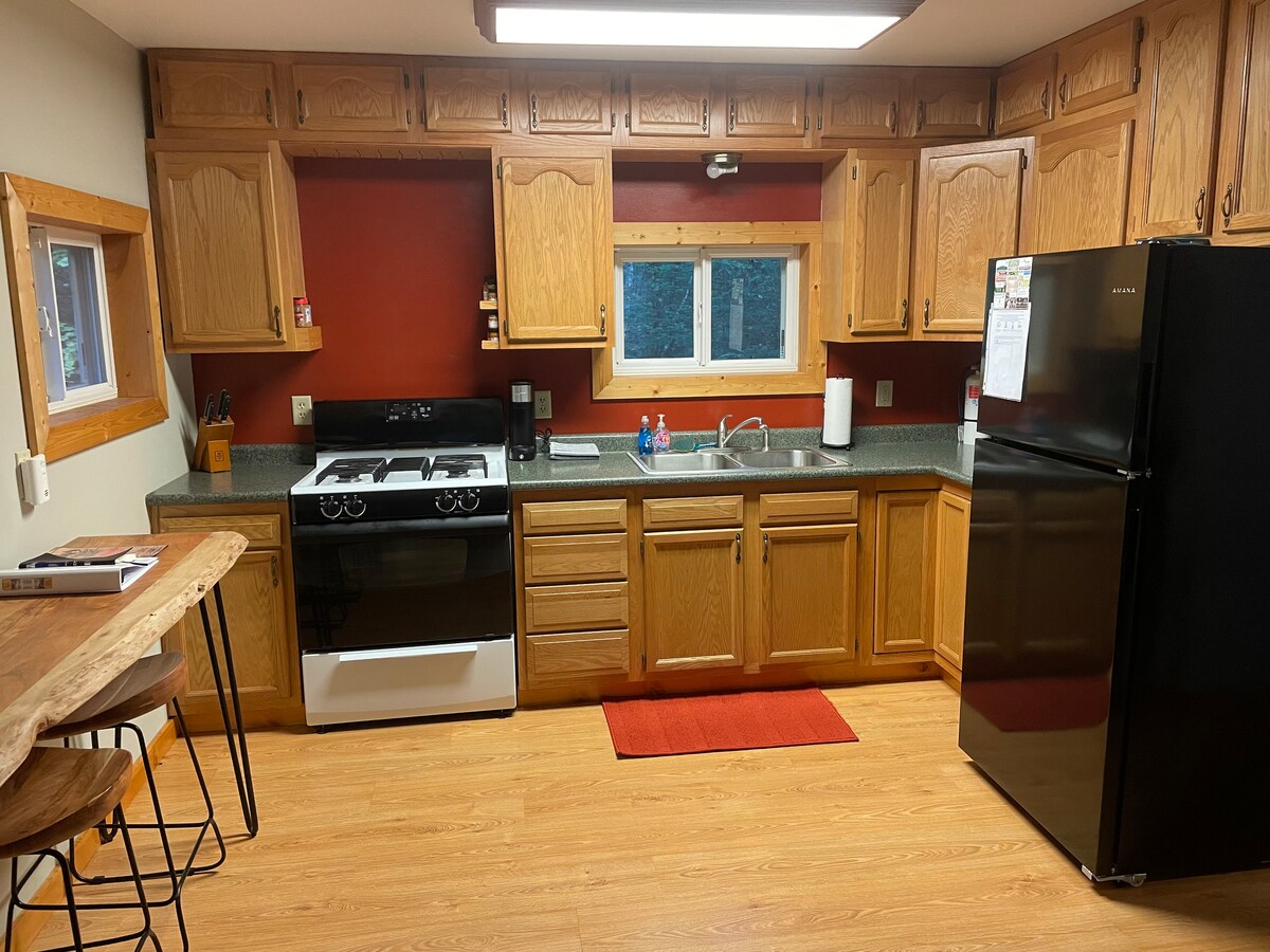 This completely renovated cabin offers a cozy retreat with 1 bedroom featuring bunk beds and a queen bed, a full bathroom, and a fully equipped kitchen. Enjoy the comfortable living room with a TV, along with heating and AC. The cabin combines modern amenities with rustic charm and is set on a beautiful 40-acre property with groomed trails for quiet walks. At night, you can stargaze. There are snowmobile trails across the street, with UTV access on the roads. Perfect for a peaceful getaway!