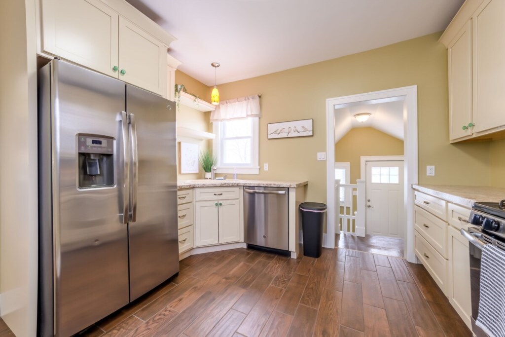 This gorgeous lakefront home is the perfect getaway for families and groups looking to have some fun at the lake. The beautiful backyard has lakefront access with a dock. This property offers 3 floors, 3 bedrooms, and 2 bathrooms. The living room is beautiful with a luxurious fireplace for guest use. The kitchen has all the appliances for cooking needed. The loft offers another bed and a TV and the unfinished basement has a ping pong table and laundry machines. A great place for a getaway!