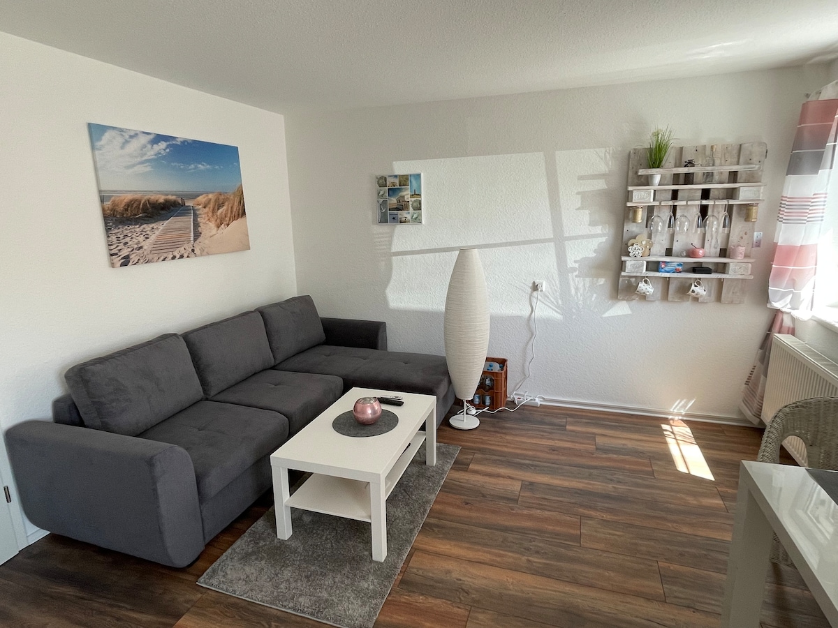 Căn hộ của chúng tôi - có lối vào riêng - mới được cải tạo vào năm 2018 và rộng khoảng 74 mét vuông. Ở phía trước căn hộ là một bãi đỗ xe lớn với sân thượng (đồ nội thất sân vườn cho 6 người). Thiết bị cung cấp, trong số những thứ khác, máy giặt, bàn là, tủ quần áo, nhà bếp với máy rửa chén, máy pha cà phê, máy nướng bánh mì, gia vị, v.v., TV, Wi-Fi miễn phí.