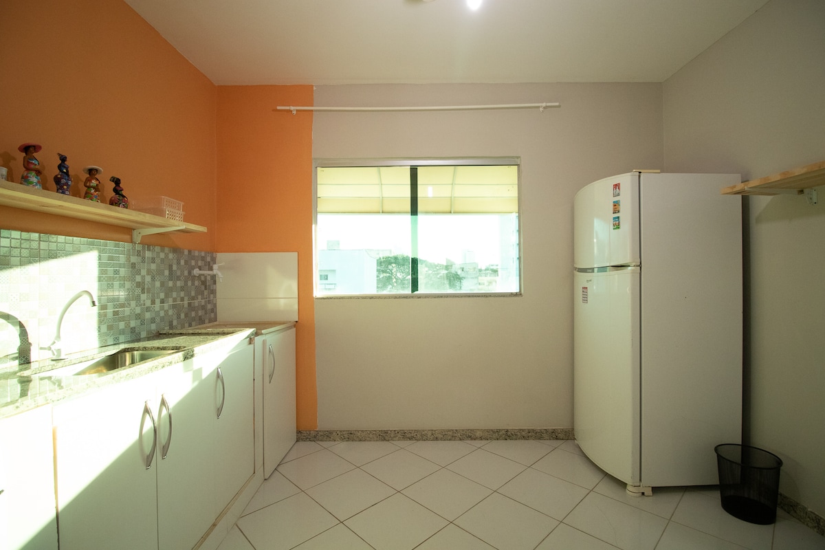 Cách Centro de Linhares/ES 1 km Quyền sử dụng của khách * Bạn sẽ có toàn bộ căn hộ. * Căn hộ ở tầng 2 và để vào, bạn sẽ cần phải leo cầu thang và vẫn có sân thượng rộng rãi. Trong số đó: Suite có điều hòa nhiệt độ • Phòng dành cho người hâm mộ; • Internet có Wi-Fi; • Khăn trải giường đầy đủ; • Vòi sen nước nóng; • Tủ lạnh; • Lò vi sóng; • Bếp; • Đồ dùng nhà bếp đầy đủ; * Vật liệu vệ sinh và vệ sinh không được cung cấp.