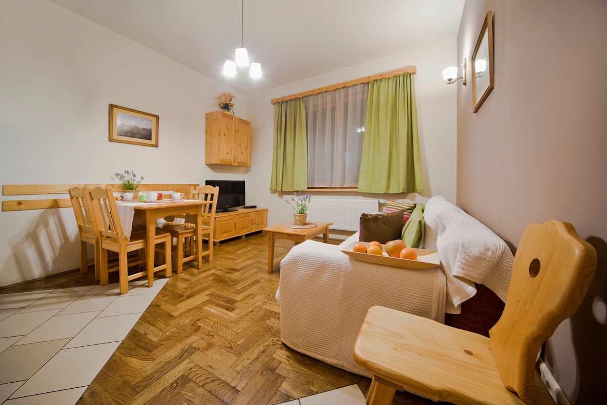 Our apartment is located at the first floor of Tamok Lifestyle Villa, it's perfect for a couple looking for a romantic stay, in a place offering great mountain views. Beautiful Tatra mountains are right behind the windows, so you may enjoy the view from your bed or balcony. It offers 20 sq meters of space, consist of a living room with kitchenette and a bathroom. The balcony is perfect for a morning coffee on a sunny day:)