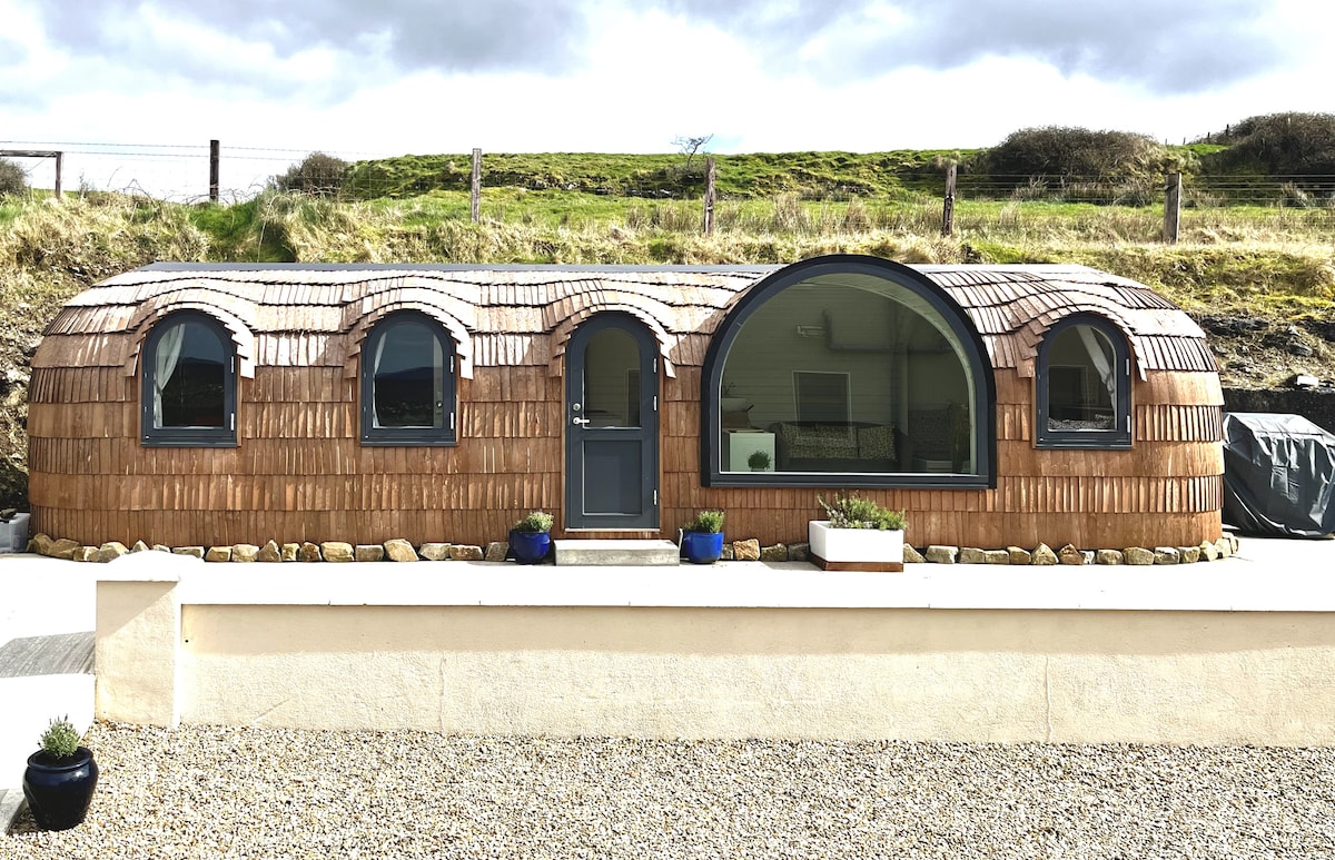 Tranquillity meets luxury glamping in our stunning IgluCabin, perched high in the hills near Geevagh, 20 mins from Sligo town. Sitting above the valley we are always stunned by the silence and sunsets that bless our location. The pod itself is beautifully designed in shiplap wood, the interior offers a cosy bedroom area, a kitchen with smart use of space, a living and dining area with lots of natural light from a panoramic window and a bathroom with shower. Traditional craftwork inside and out.