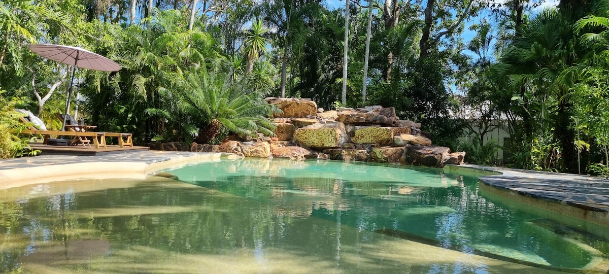 Your own private oasis and fully air-conditioned two story tropical villa, La Casa Tropical. Relax and cool off during the day in our beautiful, shady outdoor entertainment area by the resort-style pool and watch the palm trees sway in the cool breeze. Cook up a storm in our fully equipped kitchen or outdoor BBQ. Then kick back, enjoy a drink, and bask in the final glow of the afternoon sun as you watch one of Darwin's iconic sunsets and eat under the stars or by the fire!