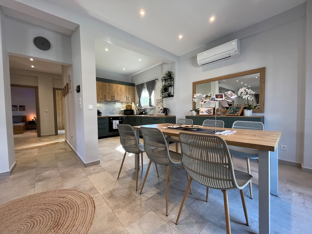 Đây là một căn hộ rộng 130 m2 khép kín đối diện Công viên Litochorou ở trung tâm trước một con đường dành cho người đi bộ, yên tĩnh ở tầng hai, miễn phí từ mọi nơi. Nó bao gồm một phòng khách lớn, nhà bếp lớn với ba phòng ăn, hai phòng tắm, phòng lưu trữ với máy giặt, điều hòa không khí, cửa chớp điện và thảm nướng có hiên lớn với tầm nhìn ra núi và biển 2 phòng ngủ lớn, mỗi phòng có ban công riêng Bếp được trang bị đầy đủ tiện nghi Có chỗ đỗ xe và trong bếp nướng trong sân cho barbegue