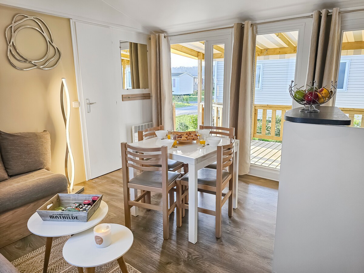 Venez-vous ressourcer et vous détendre au parc Siblu du domaine de Litteau ****, en Normandie, entre écrin de verdure, mer et forêt ! Notre Mobilhome récent et chaleureux peut accueillir jusqu’à 8 personnes avec ses trois chambres, dont une avec un lit double, et un canapé convertible double dans le salon. Vous n’avez pas à vous encombrer des draps. A l’intérieur, une TV, lecteur DVD, cuisine aménagée fonctionnelle avec four, micro-ondes...