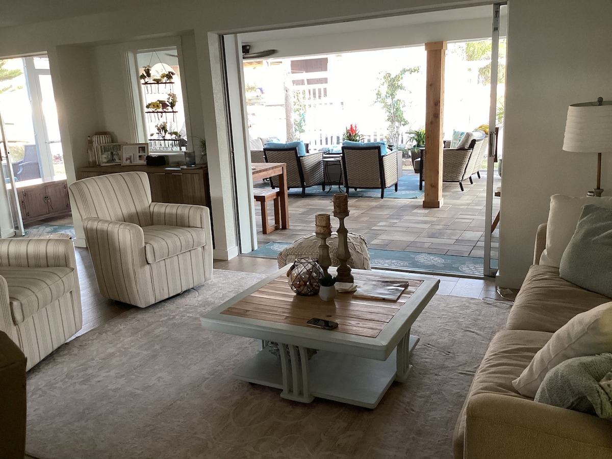 Chào mừng bạn đến với Golden Girl. Nhà 3 phòng ngủ 2 phòng tắm của chúng tôi được cải tạo hoàn toàn với tất cả nội thất mới. Một tầng quan sát cấp 2, bồn tắm nước nóng riêng, phòng ngủ tầng 6, hai phòng ngủ với các vị vua, ghế sofa giường queen ở LR, giặt ủi, WIFI tốc độ cao, tất cả các thiết bị mới, TV thông minh, nhiều hơn thế nữa! Lanai mở ra bãi biển bán riêng và khu dân cư yên tĩnh với những ngôi nhà dành cho một gia đình. Ngoài ra, bạn cũng có thể ra vào Vịnh. Có sẵn thuyền kayak để cho thuê. Không bao gồm một căn hộ riêng biệt ở trên. Không thể đánh bại vị trí!