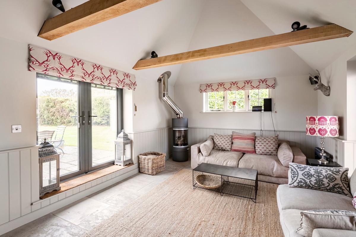 Nhà nghỉ thôn dã thoải mái và quyến rũ trong khuôn viên của ngôi nhà nông thôn Cấp 2* với khu vườn rộng 8 mẫu Anh tuyệt đẹp. Sử dụng trước hồ bơi ngoài trời */ sân tennis , bóng bàn. Những chuyến đi dạo và cô đơn tuyệt vời ở Thung lũng Stour. Bãi biển 30 phút. 2 phòng ngủ, 2 phòng tắm, TV thông minh, lối vào riêng, đầu đốt gỗ. Sân hiên ăn uống/phơi nắng với bàn, ghế, v.v. Lý tưởng cho các cặp đôi, bạn bè hoặc gia đình có tối đa 4 người Bằng cách sắp xếp: sử dụng sân tennis* và hồ bơi* theo mùa - vui lòng kiểm tra khi đặt phòng
