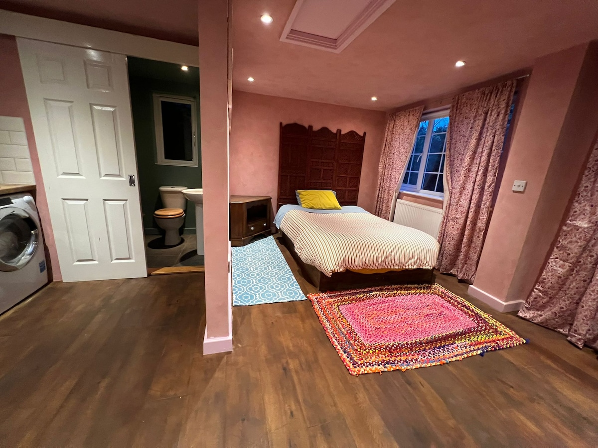 Cách ga Colchester 15 phút đi bộ và cách trung tâm Colchester lịch sử dưới 2 dặm. Chỗ ở quyến rũ này bao gồm một phòng ngủ đôi với phòng tắm vòi sen khép kín được tách khỏi nhà chính, đảm bảo sự riêng tư hoàn toàn. Hai sân golf nằm trong khoảng cách đi bộ. Khám phá các điểm tham quan gần đó; Lâu đài Colchester & Bảo tàng, Dedham vale, Willie Lot Cottage, Tháp Marney và Đảo Mersea, nơi bạn có thể nếm thử hải sản bao gồm hàu Colchester nổi tiếng