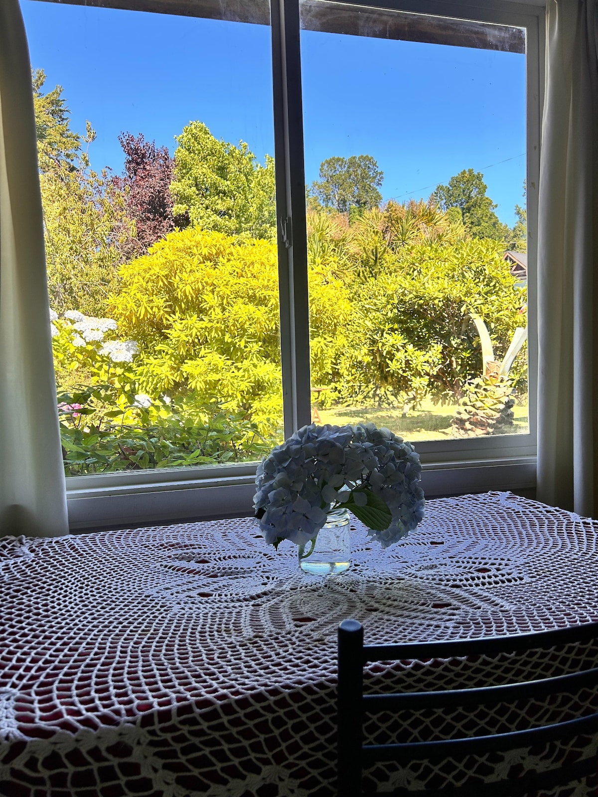 Bienvenidos a nuestro hogar con una decoración rústica y acogedora, donde el protagonismo lo tiene la tejuela de Alerce nativo y las vistas a la Laguna, campiña, todos los volcanes, amaneceres y atardeceres. A los amantes de la naturaleza y la fotografía les encantará. Cuenta con acceso a Navegación (Kayak) en la Pichilaguna, terrazas y estacionamiento privado. Por las noches puedes admirar un maravilloso cielo estrellado.