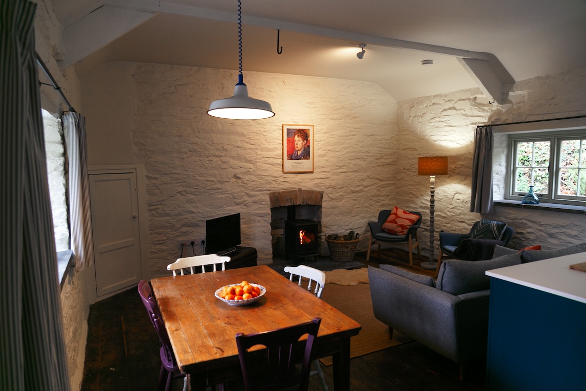 Nhà nghỉ thôn dã Pembrokeshire lãng mạn trong khuôn viên rộng 3 mẫu xinh đẹp với phòng xông hơi khô, hồ bơi tự nhiên (phụ thuộc vào mưa), phòng trò chơi và thuyền kayak. Hill đi bộ ngay trước cửa, những bãi biển tuyệt đẹp và đi bộ trên vách đá gần đó. Stargaze từ một chiếc giường cỡ king thoải mái. Ôm ấp bên bếp củi (củi miễn phí). Phòng tắm lớn với bồn tắm, vòi sen và hệ thống sưởi dưới sàn. Bếp đầy đủ tiện nghi với máy pha cà phê. Khu vực chỗ ngồi ngoài trời có lò sưởi và bbq. Internet cáp quang, TV thông minh (Netflix, v.v.). 2 chú chó ngoan ngoãn được chào đón.