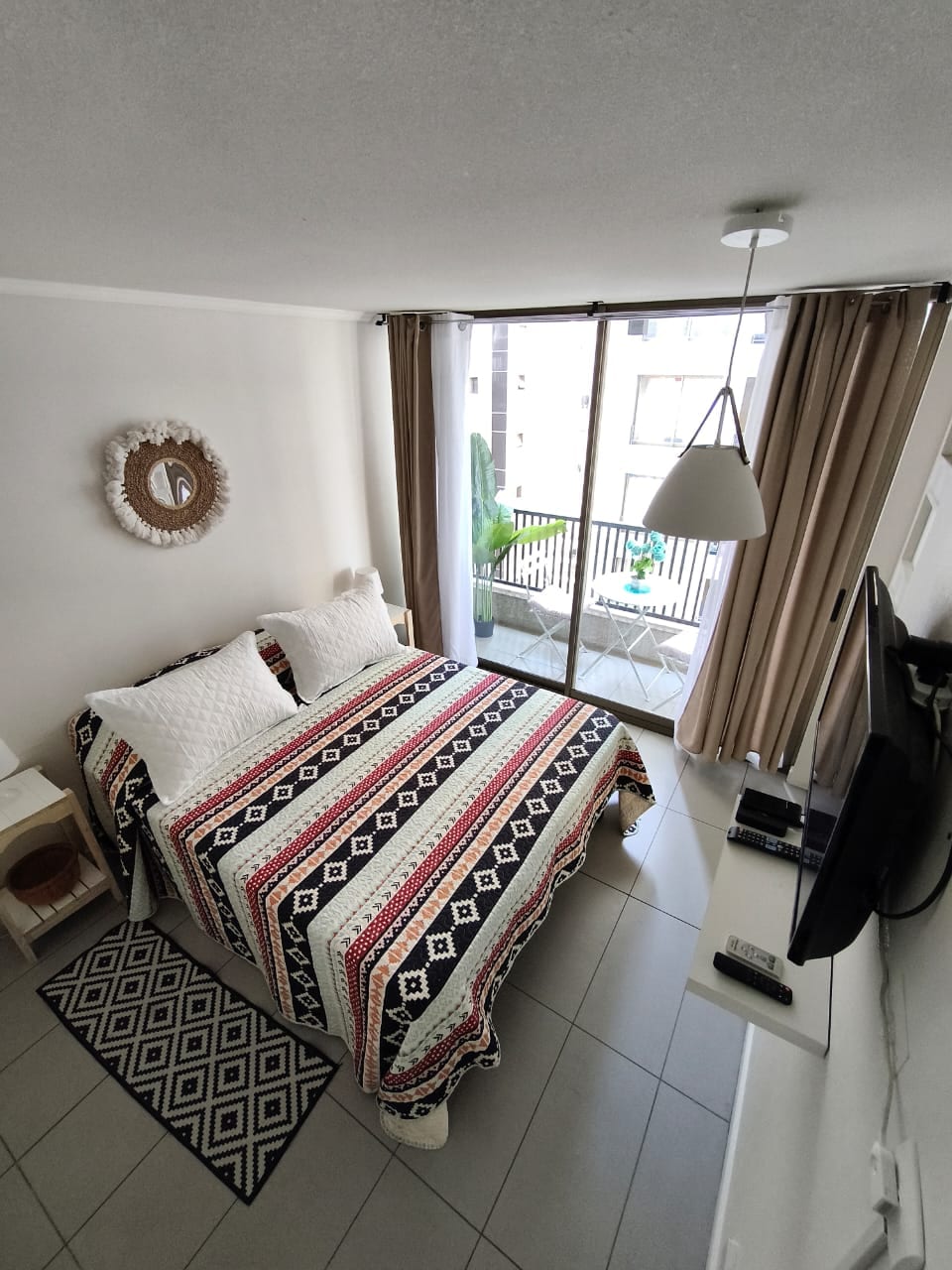 Acogedor y tranquilo estudio con cocina equipada y aire acondicionado, ideal para una estadía cómoda en Santiago. Ubicado a pasos del Parque Quinta Normal y cercano a Metro Gruta de Lourdes y Quinta Normal, con excelente conectividad. Cerca de Matucana 100, museos, Hospital San Juan de Dios, Biblioteca de Santiago, comercios y Autopista Central. A solo 20 min del aeropuerto. El edificio cuenta con plaza elevada con vista al parque y la Basílica de Lourdes. Estacionamiento disponible.