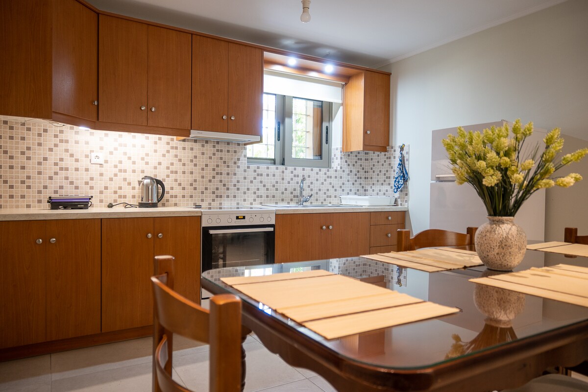 A wonderful ground level apartment with a nice yard and a vine above. Also there is sea view and the apartment is full equiped. This traditional apartment is only 1,5 km from the sea and nearby you can find coffee shop, food and ancient and byzantine places to visit. I am Kostas and i will do my best to feel the Greek hospitality.