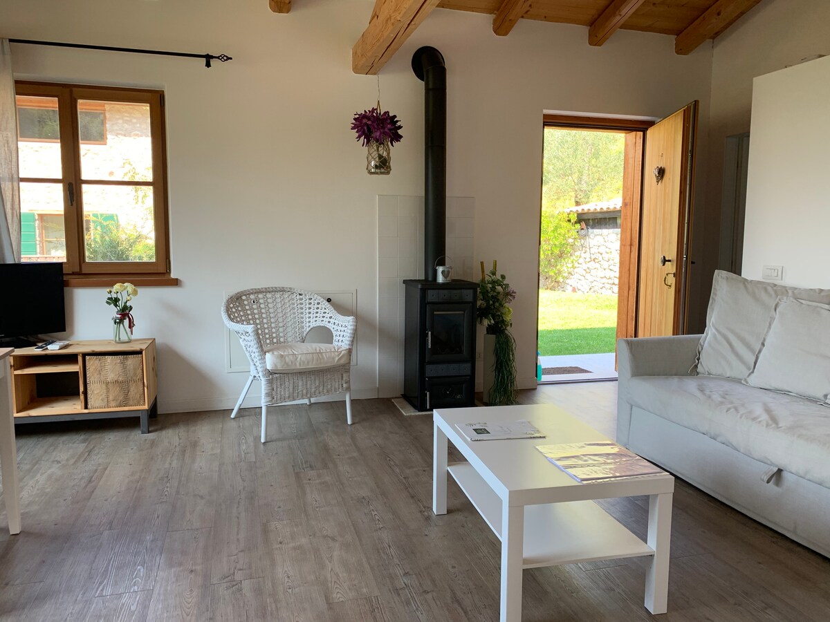 Accogliente cottage immerso nel verde. Ottima posizione. Situato a 700 m. da Bezzecca. Nei pressi della pista ciclabile per il Lago di Ledro. Veranda recintata con spazio verde per il confort e la sicurezza del vostro cane. Ampio prato soleggiato. Al primo piano: cucina attrezzata (frigorifero, lavastoviglie, microonde forno ), zona giorno (TV ) bagno. Piano superiore: 'open space adibito a zona notte,con piccolo angolo office, wifi. Riscaldamento. Deposito biciclette e parcheggio privato.