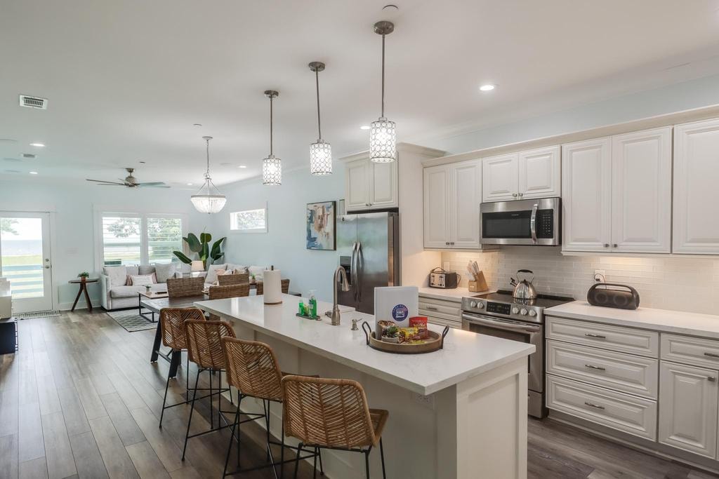 Tận hưởng trải nghiệm đầy phong cách tại căn hộ 1 phòng ngủ 1 phòng tắm nằm ở vị trí trung tâm này ở Gulfport. Không gian có thể chứa 4 khách với giường cỡ King và nệm hơi Queen. Phòng khách được trang bị TV thông minh 60 inch. Đăng nhập và phát trực tuyến bằng các ứng dụng như Netflix và Hulu. Bếp được trang bị đầy đủ với tất cả các vật dụng cần thiết để nấu ăn. Vị trí tuyệt vời với một chuyến đi bộ ngắn đến Thủy cung % {list_, Công viên Jones và Trung tâm Gulfport.