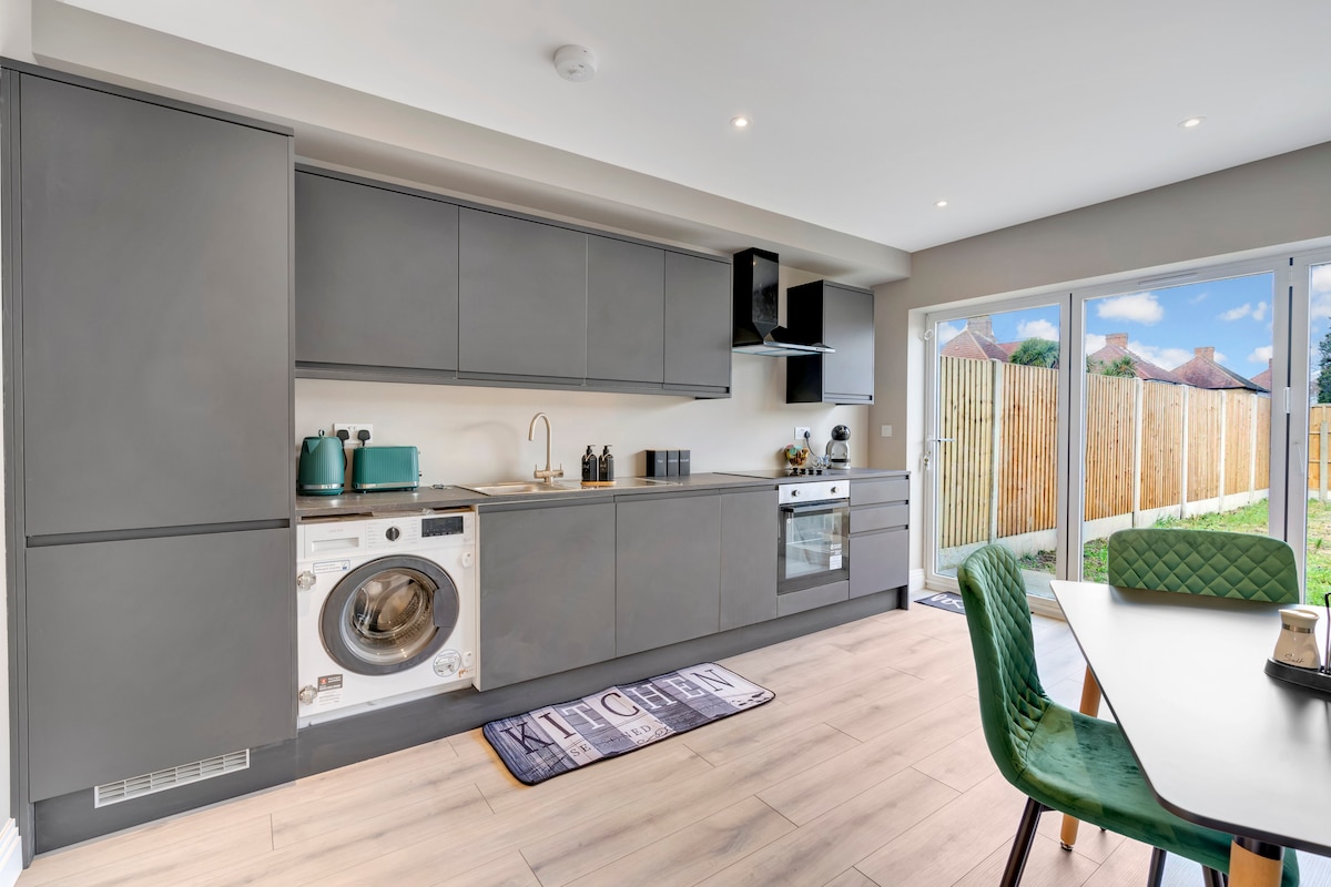 Thư giãn và nghỉ ngơi trong nhà nghỉ 2 phòng ngủ hoàn toàn mới, hiện đại, khép kín của chúng tôi gần Heathrow. Tận hưởng bếp không gian mở được trang bị đầy đủ tiện nghi để tự phục vụ, quầy bar phục vụ bữa sáng, không gian sống ấm cúng và phòng tắm riêng. Nằm trên một con phố yên tĩnh, cách Công viên nông thôn Bedfont Lakes, các cửa hàng địa phương và phương tiện giao thông vài phút. Lý tưởng cho học viên GLA, điểm dừng chân tại Heathrow hoặc kỳ nghỉ ở London.