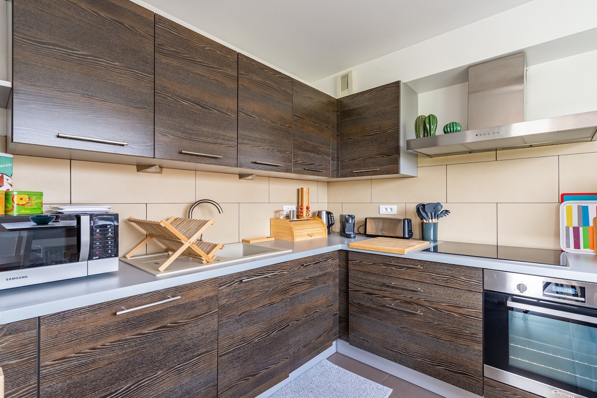 Thư giãn trong chỗ ở yên tĩnh và phong cách này. Tất cả các bạn đều có thể tùy ý sử dụng để làm cho thời gian ở của bạn cách tất cả các cửa hàng 5 phút đi bộ. Chìa khóa được giao trực tiếp để bạn có thể trả lời bất kỳ câu hỏi nào được trang bị đầy đủ chỗ đỗ xe trước căn hộ và trạm xe buýt cách đó 1 phút. Công viên nhỏ gần đó với sân chơi và khu dã ngoại. Chúng tôi rất mong được chào đón bạn! (Không tính thêm phí vệ sinh giường khi đến)