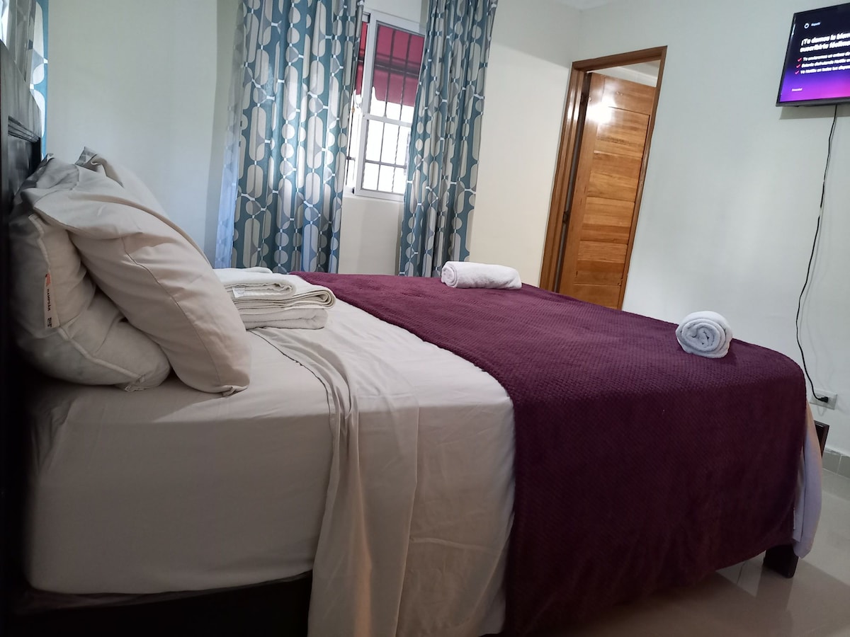 Relájate en este apartamento moderno, cómodo y elegante, ubicado en la Autopista Duarte KM 17, detrás del Ole, en una zona tranquila y de fácil acceso. El alojamiento cuenta con 2 habitaciones, 2 camas, 1 baño y capacidad para hasta 5 huéspedes, ideal para familias, parejas o viajeros de trabajo. Disfruta de un espacio totalmente amueblado, con aire acondicionado, Wi-Fi de alta velocidad, telecable y parqueo privado para mayor seguridad y comodidad.