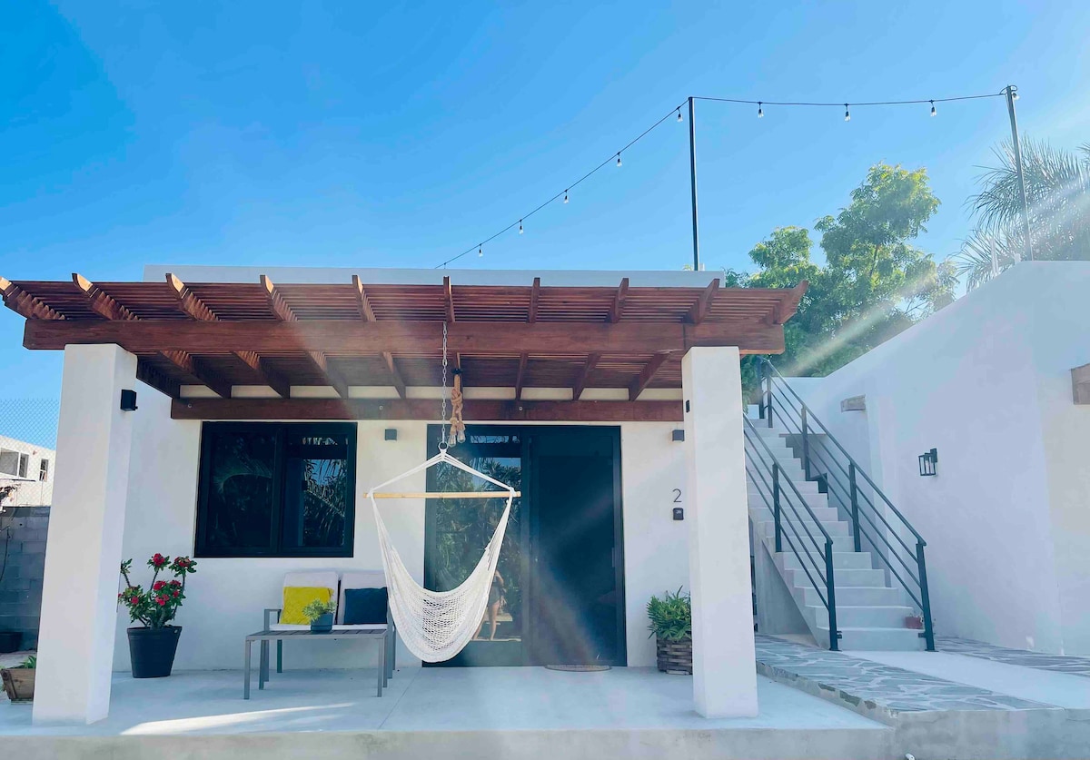 Welcome to Villas del Scarlet Cardones! Retreat to our peaceful downstairs condo in the heart of Cerritos. This is the only swim-able beach north of Cabo on the Pacific! Take in the ocean views and amazing Sierra de la Laguna mountain range from the property on your very own rooftop balcony. The condo is a 2 minute walk from the beach, restaurants and bars. We're located around 1 hr from Cabo and only 7 kilometers from Todos Santos. A/C, Pool, Hot Tub, Outdoor Grill Area, & WIFI!