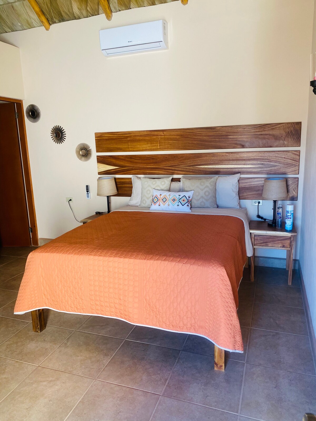 Một ốc đảo nhiệt đới giữa sa mạc đang chờ đón bạn! Phòng số1 bao gồm tầng trệt của chỗ ở. Bên trong là bếp nhỏ, phòng khách có xe khách và TV màn hình phẳng, phòng ngủ chính có giường cỡ king và phòng tắm riêng có vòi hoa sen. Hai nệm đôi được cất dưới giường cỡ king - tuyệt vời cho trẻ em! Bên ngoài, bạn sẽ có quyền sử dụng BBQ và nhà bếp chung, phòng tắm ngoài trời và khu vực vườn. Cabanas Costa Turquesa cách trung tâm Los Barriles khoảng 1 dặm và cách bãi biển 2 phút!