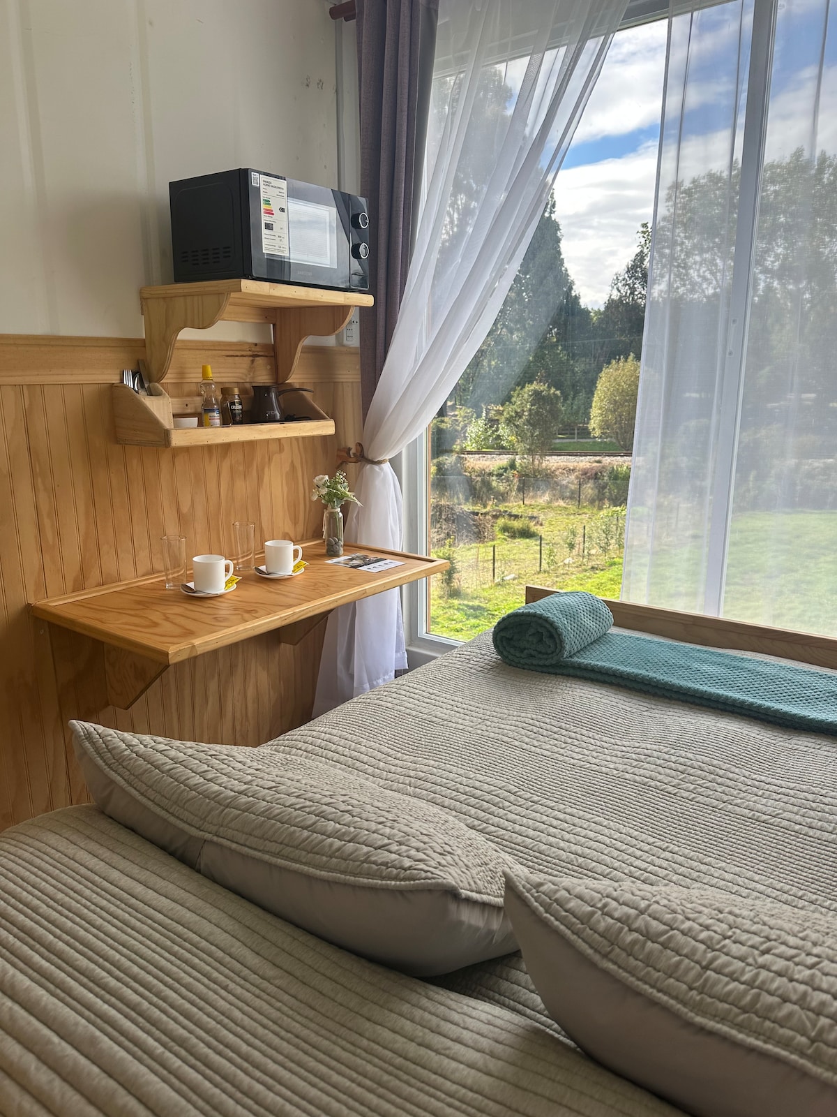 Cabin có thiết bị cần thiết cho 2 người. Nơi yên tĩnh, có bãi biển, đường mòn, rừng, nhà hàng, thuyền kayak và những nơi khác. Chúng tôi khuyên bạn nên sử dụng dịch vụ đưa đón và tham quan để chuyến đi của bạn dễ dàng hơn, thoải mái hơn và có giá cả phải chăng. Vị trí lý tưởng, giữa Puerto Varas và Ensenada, điều này cho phép bạn ngắt kết nối mà bạn đang tìm kiếm nhưng không rời xa những thứ bạn cần hoặc quan tâm.