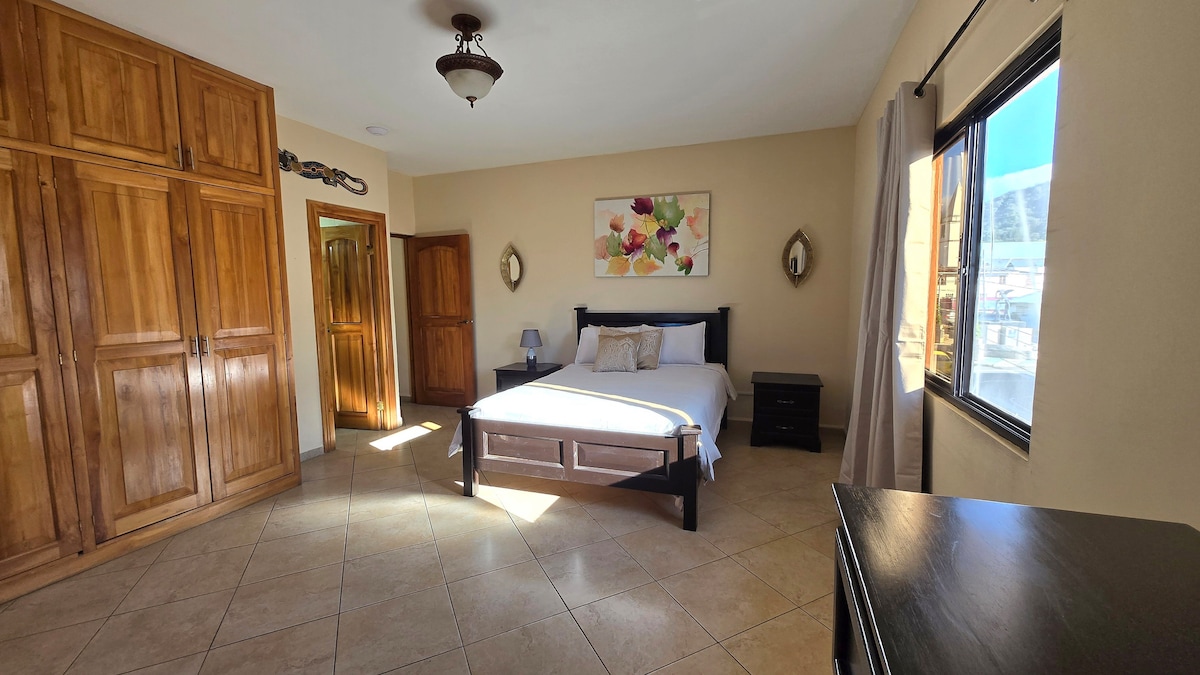 Căn hộ một phòng ngủ sang trọng với tầm nhìn tuyệt vời từ trên cao đến thị trấn tại CASA EJECUTIVA BOQUETE. Bếp đầy đủ, 1,5 phòng tắm, 2 giường cỡ king, 1 giường cỡ queen và khu vực để giải trí cho khách. Nó có một lớp bọc đầy đủ xung quanh ban công và cực kỳ an toàn, với lối vào duy nhất là một cánh cửa gỗ sồi nặng duy nhất. Kết nối internet chính nhanh (~100mbps), kết nối internet dự phòng, tấm pin mặt trời và bể chứa nước tại chỗ. Chúng tôi không bao giờ bị mất nước hoặc điện. Không có cầu thang cho căn hộ này.