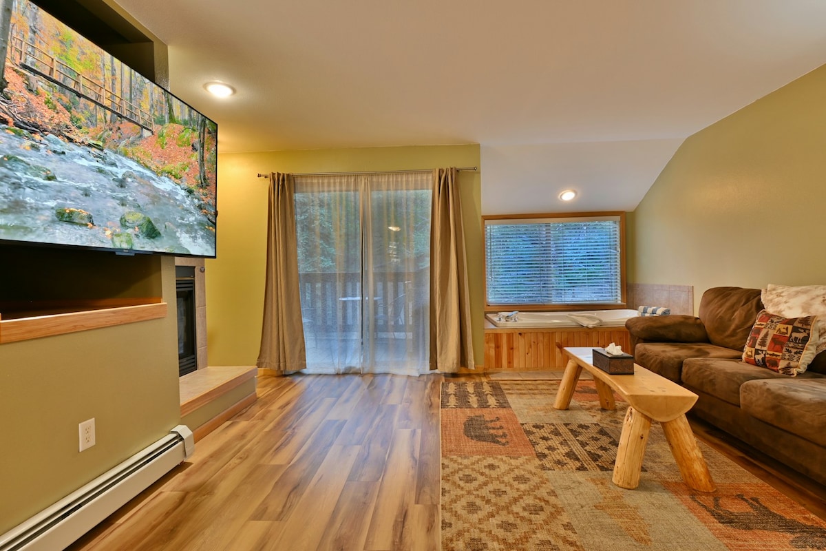 Hoàn toàn được tu sửa! Căn hộ cao cấp ấm cúng trên núi 2 phòng ngủ 2 phòng tắm nép mình ngay trong Rừng Quốc gia Roosevelt và chỉ cách Sông Fall gầm rú vài bước chân. Sàn riêng tạo nên khung cảnh tuyệt vời nhất nhìn ra tất cả. Thưởng thức cà phê buổi sáng của bạn ở đó ngắm động vật hoang dã hoặc rượu vang buổi tối ngâm mình trong bồn tắm nước nóng. Tất cả đều chắc chắn sẽ làm dịu tâm hồn! Nội thất có sự rung cảm hiện đại/cổ điển ngọt ngào bao gồm một số bức tranh tường tùy chỉnh chiết trung thú vị. Trên hết, chỉ cách lối vào RMNP và Downtown Estes vài phút. Wi-Fi