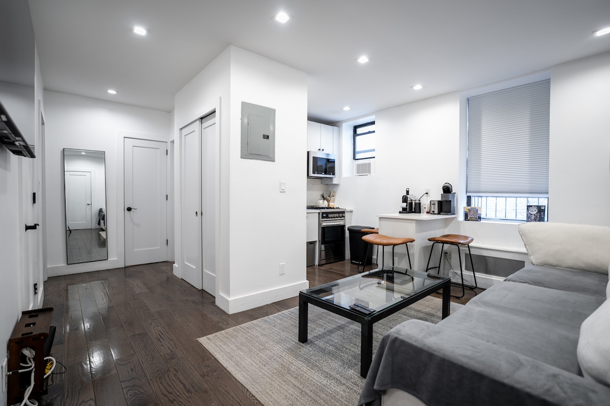 Chào mừng bạn đến với căn hộ studio ấm cúng của chúng tôi! Ẩn mình trong một khu phố sôi động, không gian được thiết kế chu đáo của chúng tôi mang đến sự thoải mái và phong cách. Tận hưởng giấc ngủ ngon vào ban đêm trên chiếc giường sang trọng, thư giãn trong khu vực sinh hoạt hiện đại và thưởng thức cà phê buổi sáng trên ban công riêng. Với khả năng tiếp cận thuận tiện đến các điểm tham quan và tiện nghi địa phương, studio của chúng tôi là cơ sở hoàn hảo cho thời gian lưu trú của bạn chỉ cách Công viên Trung tâm và các ga tàu điện ngầm lớn vài phút đi bộ. Đặt ngay để có trải nghiệm đáng nhớ ngay trung tâm thành phố mới.