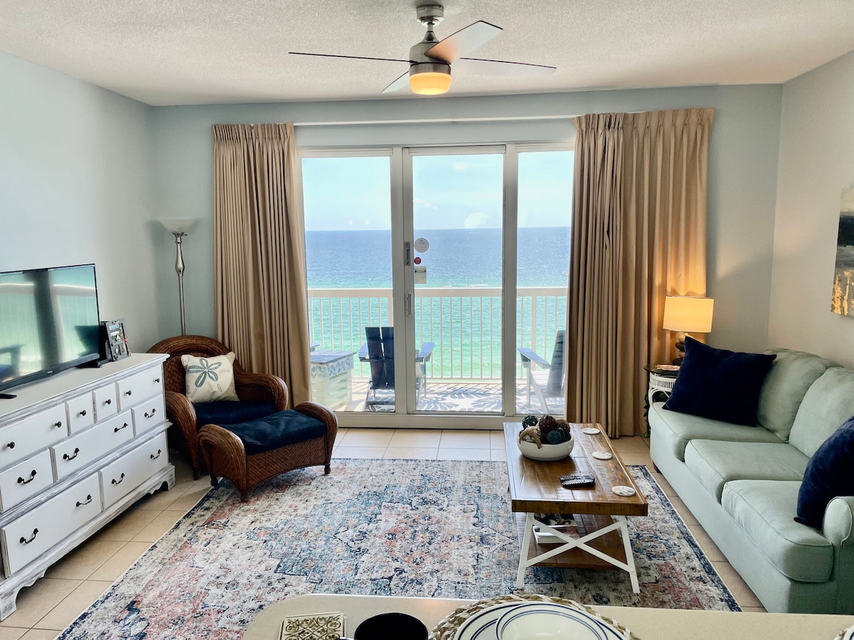 FREE BEACH CHAIRS/ UMBRELLA INCLUDED MARCH through OCTOBER!!! This beach front 1 bedroom 2 bath condo is beautifully remodeled with plenty of space for couples & small families wanting some relaxation and FUN in the SUN IN PCB, FL! Enjoy the private Gulf front balcony, where breathtaking views of the beach and Gulf are on full display! Look out over the seasonally heated East side pool straight to the sugar white sand and turquoise water!