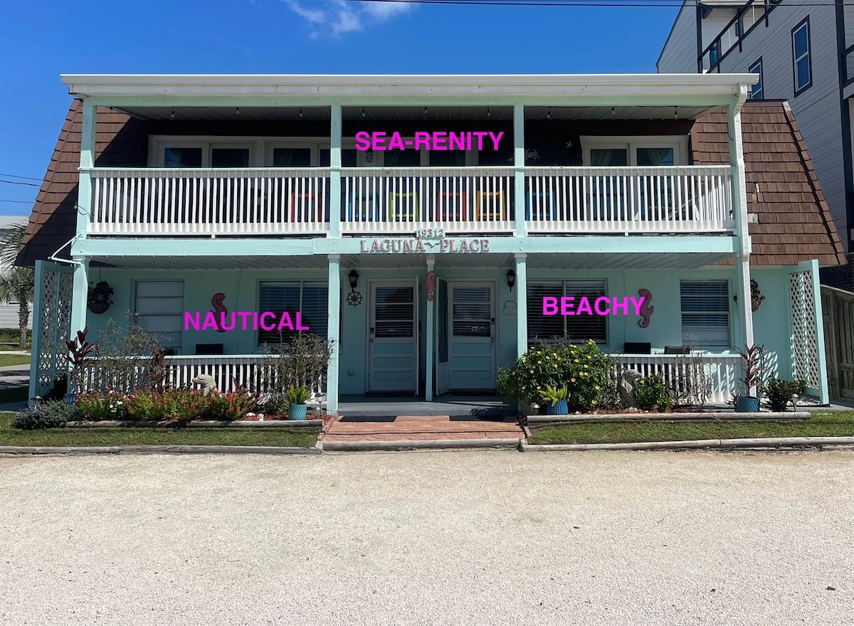 Beach house walking distance to the beach, local restaurants, and activities! This is a duplex where we can host up to 14 guests in both units (see other listings). We also own the duplex next door where we can host another 14 guests to host a total of 28 guests for large groups. We have washers and dryers per unit. We provide beach gear, board games, corn hole, & a putting green for family fun. The fenced courtyard is a shared space & with your own space in the back of the unit.