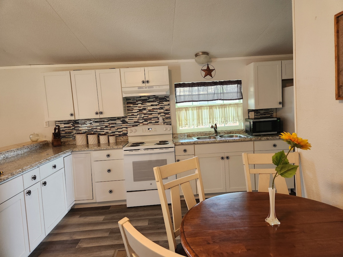 Cho dù bạn là người làm việc từ xa, chuyên gia đi công tác hay một gia đình cần không gian và sự yên tĩnh cho thời gian lưu trú dài hơn, ngôi nhà đồng quê 2 phòng ngủ, 2 phòng tắm này mang đến sự pha trộn hoàn hảo giữa sự thoải mái, riêng tư và tiện lợi. Ẩn mình trong một khung cảnh yên bình, ngôi nhà đầy đủ tiện nghi này được thiết kế để lưu trú lâu hơn. Tận hưởng WiFi nhanh, đáng tin cậy, hai phòng ngủ riêng biệt, bếp đầy đủ tiện nghi và máy giặt/máy sấy tất cả các tiện nghi thiết yếu để sống và làm việc thoải mái.