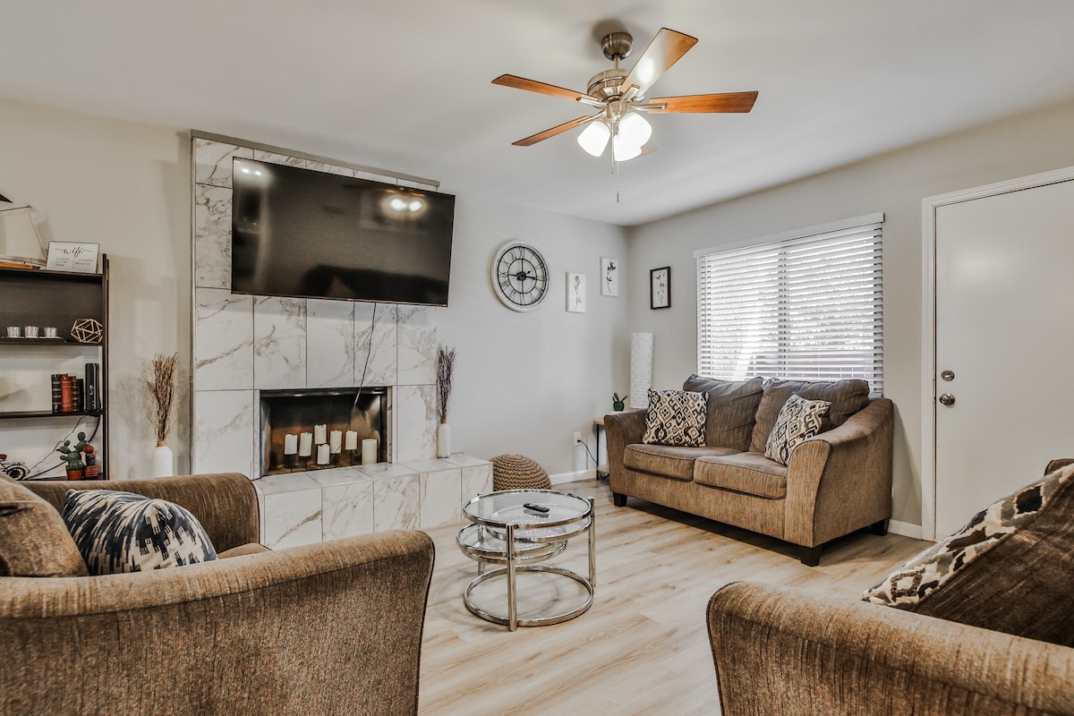 Thư giãn và nạp năng lượng trong khu nghỉ dưỡng thanh bình, đầy phong cách này. Căn hộ Blackjack Cozy là ngôi nhà hoàn hảo của bạn. Căn hộ cao cấp được cập nhật này cung cấp không gian rộng rãi để thư giãn, với hồ bơi có sẵn trong những tháng mùa hè. Tận hưởng việc tụ tập cùng nhau trong các khu vực chung rộng rãi hoặc nghỉ ngơi tại các phòng riêng biệt trong thời gian yên tĩnh. Tọa lạc tại vị trí thuận tiện ở South Lubbock, căn hộ cho phép dễ dàng tiếp cận Texas Tech, mua sắm và các cơ sở y tế. Phòng chính là một thiên đường riêng. Wi-Fi nhanh trong suốt.