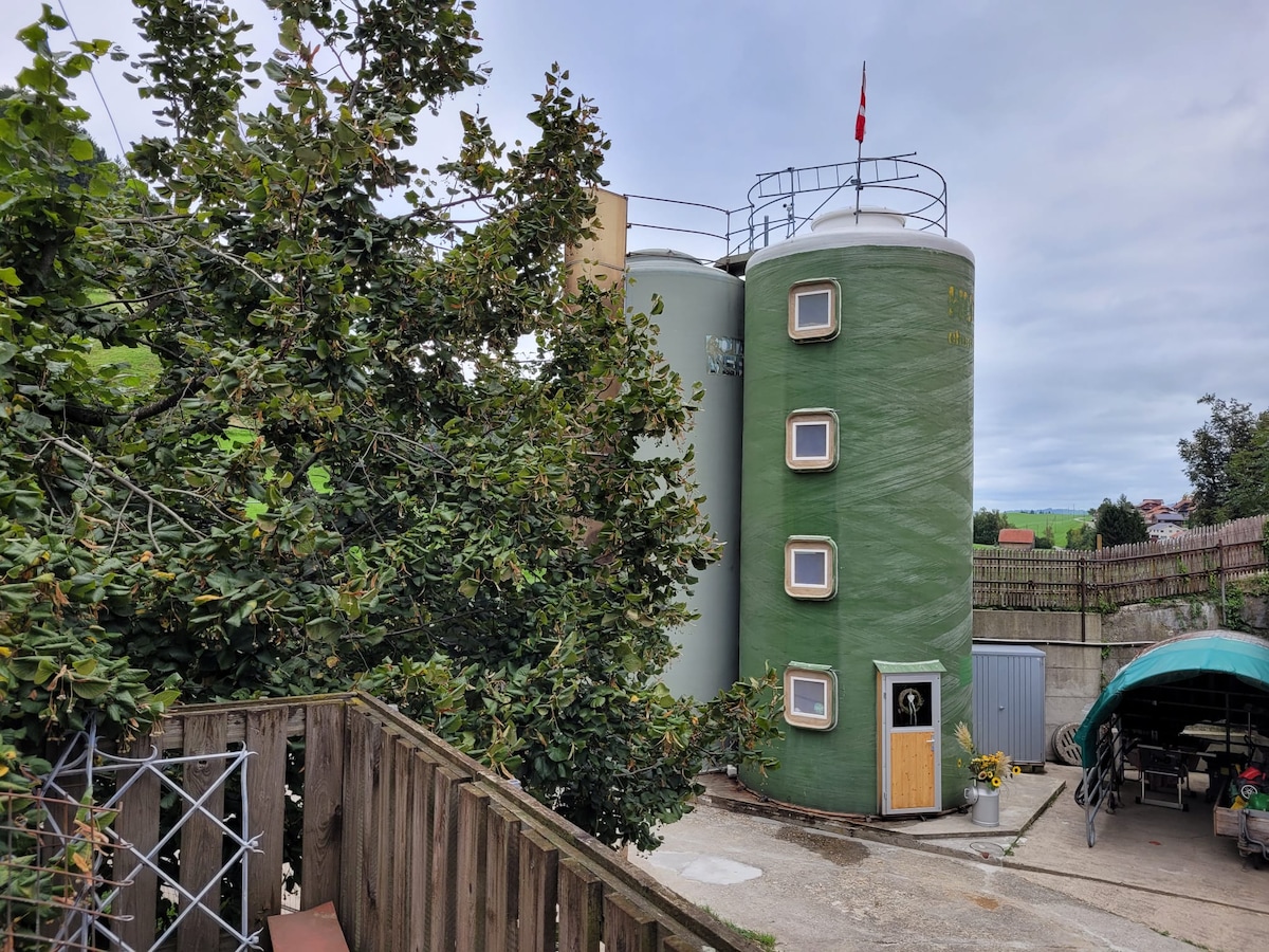Unser liebevoll umgebautes Silo ist der ideale Ort für alle, die ihre Zeit am liebsten aktiv in der Natur verbringen. Umgeben von Bauernhoftieren, frischer Luft und viel Grün bietet diese aussergewöhnliche Unterkunft die perfekte Kombination aus Erholung und Abenteuer. Und das besondere Highlight: Durch die grosse Lichtkuppel können die Sterne vom Bett aus beobachten werden!