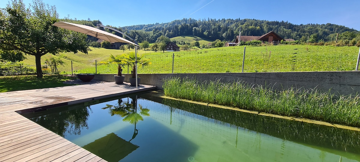 Một căn phòng trong một ngôi nhà nghỉ dưỡng mới được cải tạo một phần với hồ bơi tự nhiên và hồ bơi nước xoáy đang chờ bạn dưới chân núi Pilatus. Ở đây bạn có thể thoát khỏi cuộc sống hàng ngày một cách hoàn hảo và tận hưởng sự riêng tư hoàn toàn. Thành phố Lucerne, khu trượt tuyết Melchsee-Frutt và Engelberg nằm ngay gần đó. Có thể đến ga thung lũng đến Pilatus chỉ trong 20 phút đi bộ.