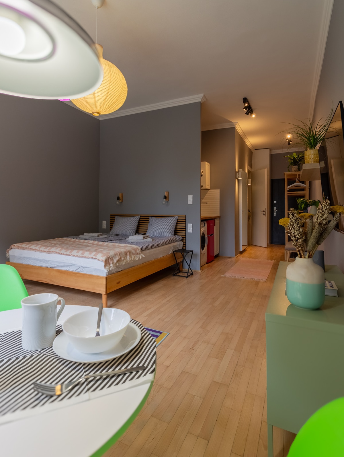 Là một viên ngọc quý khác trong bộ sưu tập căn hộ độc đáo của chúng tôi, chúng tôi giới thiệu một ngôi nhà hoàn toàn mới cho du khách Budapest sành điệu ở một địa điểm tuyệt vời. Nó phong cách, sang trọng, thoải mái và đúng với môi trường và phong cách kiến trúc của tòa nhà. Đây là một trong số ít các tòa nhà Bauhaus chính hãng ở trung tâm Budapest, và tất nhiên, theo cách hiện đại hóa, chúng tôi đã cố gắng sống đúng với nhiều yếu tố của phong cách có ảnh hưởng này khi chúng tôi tạo ra căn hộ độc đáo này.