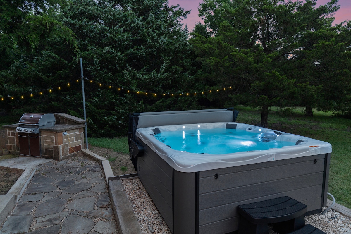 Thoát khỏi một kỳ nghỉ thư giãn được bao quanh bởi cuộc sống nông trại Texas quyến rũ! Hãy quên đi rằng bạn chỉ cách sự hối hả của thành phố vài phút khi bạn đến The Barn! Thưởng thức cà phê buổi sáng với bình minh trên sân hiên, trứng tươi trang trại, lạc đà không bướu và sừng dài. Cho dù đó là một cuốn sách hay trong phòng khách ấm cúng hay trà ngọt trên sân thượng, thư giãn đang chờ đón bạn! Bạn chắc chắn sẽ tạo ra những kỷ niệm khi nướng, chơi trò chơi trên sân và làm cho hố lửa bốc mùi dưới bầu trời đêm đầy sao!