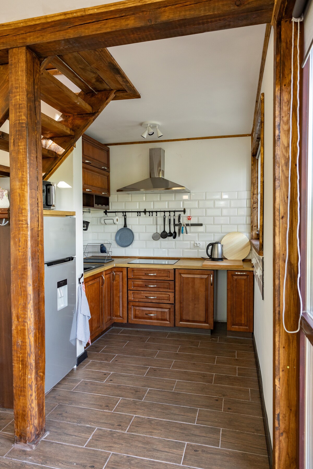 Chào mừng bạn đến với nhà nghỉ thôn dã quyến rũ của chúng tôi ở Villa Mycyna, nằm ngay trung tâm thiên nhiên. Mỗi nhà nghỉ thôn dã có 2 phòng ngủ, bếp đầy đủ tiện nghi, phòng khách ấm cúng với lò sưởi, phòng tắm hiện đại và sân thượng nhìn ra vườn. Có bồn tắm nước nóng trong vườn, bếp nướng, xe đạp và phòng trò chơi. Nơi hoàn hảo cho các gia đình, cặp đôi và nhóm bạn bè đang tìm kiếm sự yên bình và thoải mái gần hồ và rừng.