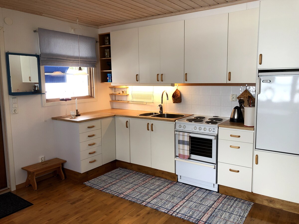 Chỗ ở thân thiện với môi trường! Sunpanels trên mái nhà. Chúng tôi mang đến cho bạn phòng xông hơi khô, một số thiết bị tập thể dục và gần đó cũng có một hồ nước có lò sưởi. Bạn có thể đi câu cá hoặc mượn thuyền nhỏ của chúng tôi. Bạn sẽ có nhà riêng hoàn chỉnh với vòi sen, nhà vệ sinh và nhà bếp nhỏ. Nhà của chúng tôi cách Luleå (có xe hơi) 30 phút nhưng có xe buýt nhiều lần trong ngày. Không được phép mang theo THÚ cưng. Do các vấn đề dị ứng. Cũng hoàn hảo cho mùa đông, ngôi nhà được cách nhiệt hoàn toàn.