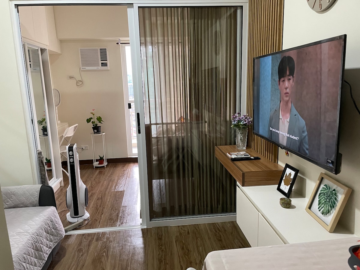 A cozy modern Scandinavian/tropical retreat nestled in the heart of the city. This is a place where you can relax, unwind and have fun with your loved ones or just by yourself. The living area is adorned with light-colored wooden floors, providing a warm and welcoming ambiance. Furnished with simple yet stylish Scandinavian/Tropical furniture. The kitchen is fully functional. Equipped with all your cooking needs. The bedroom’s minimalist design will for sure give you a restful night’s sleep.