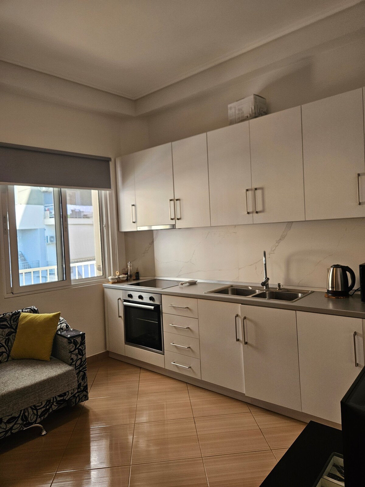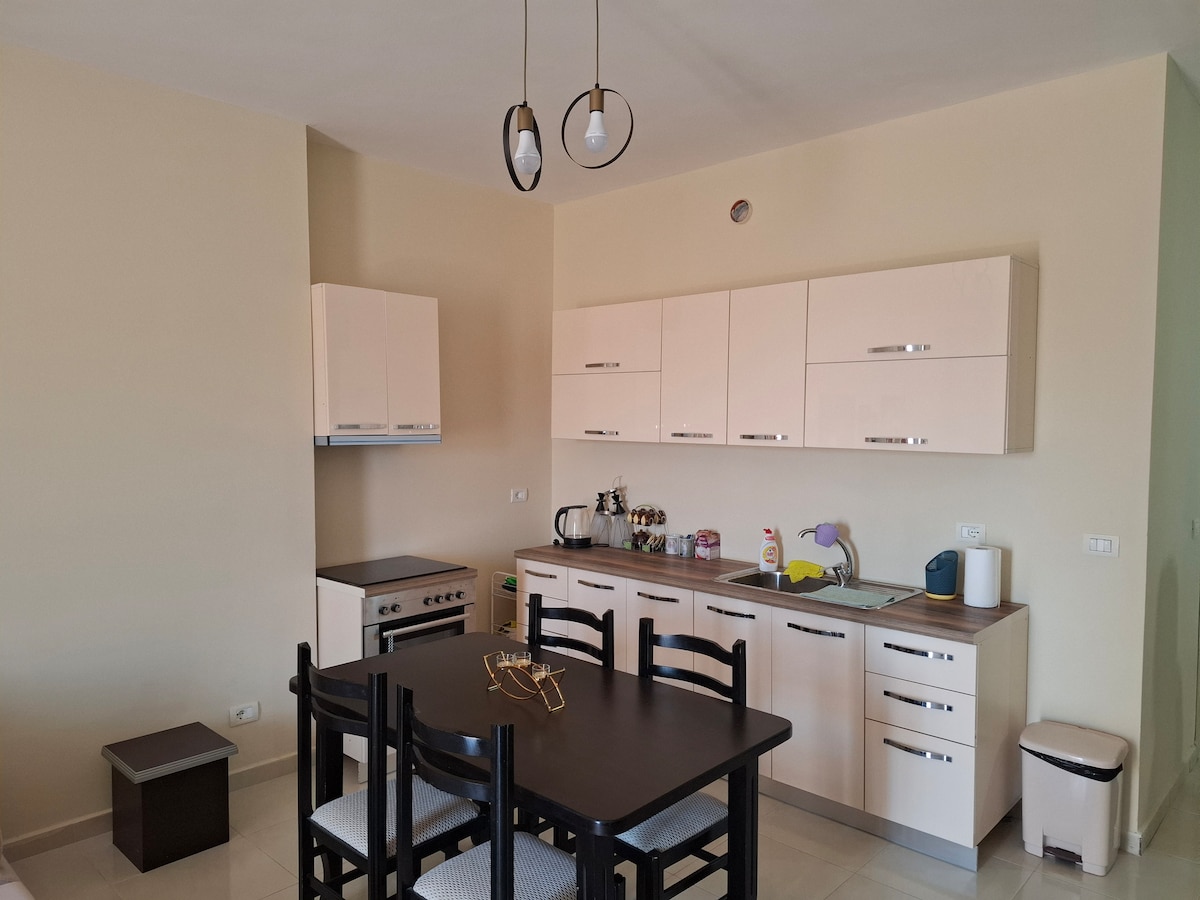 Enjoy a comfortable stay in this centrally located studio in the heart of Lushnje. Ideal for solo travellers or couples, the apartment is within 100 metres of popular cafés, restaurants, clinics, supermarkets, parks, and entertainment areas. Everything you need is right on your doorstep, with no car required. A bright and practical space, perfect for a convenient and stress-free city stay.