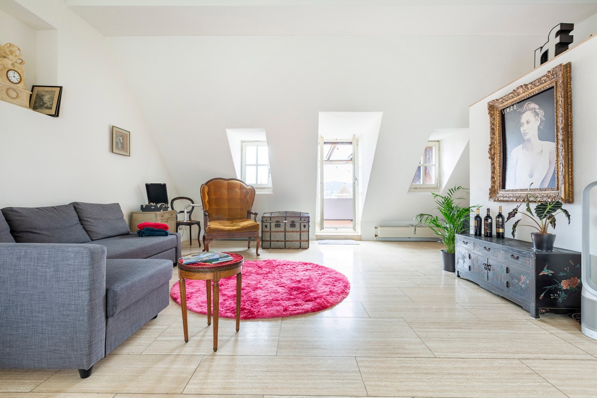 Willkommen in unserer hellen 2-stöckigen Dachwohnung in der Altstadt von Luzern! Mit großer Terrasse, Alpen-Panorama, Seeblick, Outdoor-Schlafen unter Sternenhimmel und antiker Möblierung bietet die Wohnung einen charmanten Rückzugsort. Ausgestattet mit einem Queensize-Bett, 2 Einzelbetten, einem 2-er-Schlafsofa, hellem Wohnraum, moderner Küche, Marmorboden, Regendusche und separatem WC. Geniesse das lebendige Altstadtumfeld mit Restaurants, Bars und Geschäften. Einzigartiges Erlebnis in Luzern!