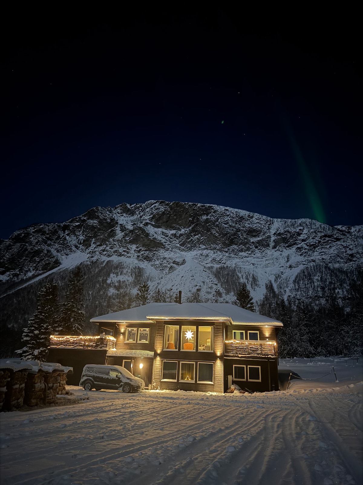 Cabin nằm trong khu vực cabin nhỏ nhìn ra biển, dãy núi Lyngen Alps và các vịnh hẹp. Có điều kiện mặt trời đẹp từ sáng đến tối. Thật tuyệt vời khi tận hưởng khung cảnh, bình minh như hoàng hôn, từ bên trong hoặc trên boong tàu bên ngoài. Mùa đông mang đến ánh sáng tuyệt đẹp thay đổi trong suốt cả ngày. Và tất nhiên bạn có thể tận hưởng ánh sáng phương Bắc kỳ diệu nhảy múa trên bầu trời ngay từ cabin. Tại đây bạn có thể tham gia tour tham quan đỉnh núi, đạp xe, đi bộ trong rừng hoặc ra biển, hoặc chỉ thư giãn với một ly rượu vang và tận hưởng khung cảnh.