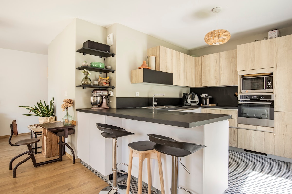 AIR-C & COZY 2BR, 55 m², Bãi đỗ xe, cách Lyon 2 phút.