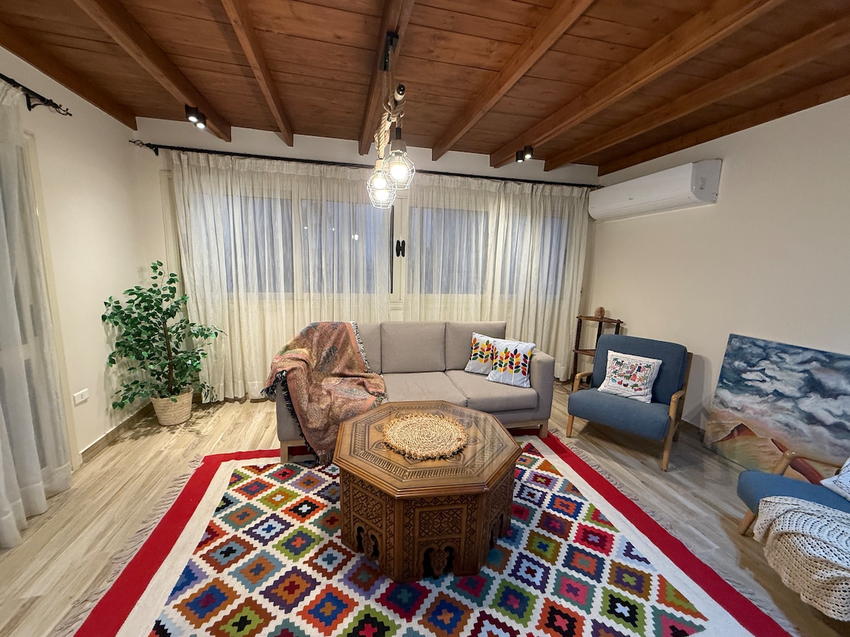 Căn hộ 3 phòng ngủ yên bình này có tầm nhìn toàn cảnh tuyệt đẹp và khu vực sinh hoạt rộng rãi, ấm cúng. Nằm cách các quán cà phê, nhà hàng và các dịch vụ thiết yếu chỉ 3 phút đi bộ.Bạn sẽ tận hưởng sự tiện lợi của khu phố sôi động của Maadi. Xe máy điện có sẵn để dễ dàng di chuyển xung quanh khu vực. Hoàn hảo cho cả thư giãn và khám phá, căn hộ này kết hợp sự thoải mái với vị trí đắc địa cho một kỳ nghỉ đáng nhớ ở Cairo.