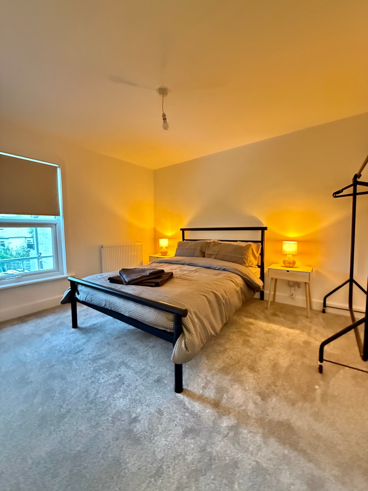 Self contained annexe in my private garden with ensuite bathroom. Own entrance via side gate. Fridge and kettle with tea and coffee and also microwave, toaster and crockery/cutlery/glasses. Breakfast cereal and milk is supplied and guests are welcome to bring their own food and drinks. Gym and pool across the road , also pub and takeaways within walking distance. Includes towels and toiletries. Sunday evenings are available by request.
