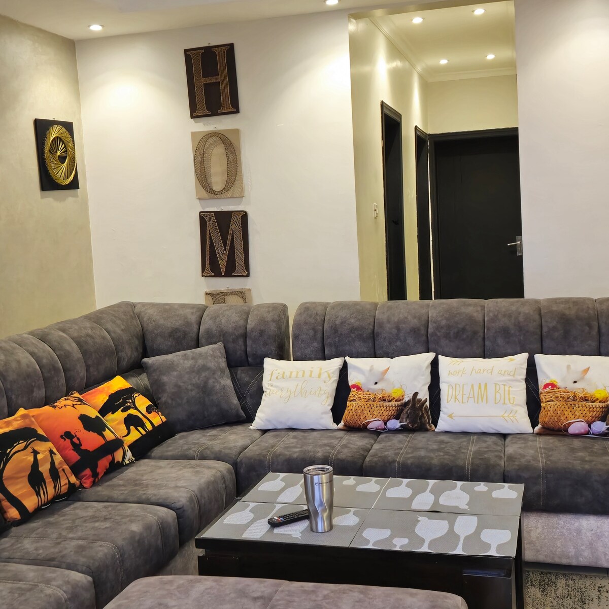 Chào mừng bạn đến với khu nghỉ dưỡng gia đình 3 phòng ngủ hấp dẫn của chúng tôi nằm trong Nyayo Estate, chỉ cách Sân bay quốc tế JKIA 10 phút lái xe. Lý tưởng cho các gia đình, nó có giường tầng cho trẻ nhỏ và đồ đạc trang nhã xuyên suốt. Bạn cần đồ tạp hóa? Đừng lo! Một siêu thị 24 giờ chỉ cách 5 phút. Ngoài ra, hãy tận hưởng giải trí trên TV 55 inch thông minh của chúng tôi với kết nối internet. Trải nghiệm sự thoải mái và thuận tiện tại thiên đường ấm cúng này, hoàn hảo cho thời gian lưu trú tại Nairobi của bạn!