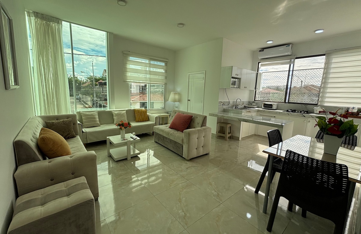 🌞 Tận hưởng Machala hết mình 🌆✨ Căn hộ đẹp và hiện đại, hoàn hảo cho khách du lịch hoặc khách đi công tác. 🛏️ Phòng có điều hòa, TV, phòng tắm riêng và ban công có vỉ nướng điện. 🍳 Nhà bếp đầy đủ tiện nghi và vị trí trung tâm, gần mọi nơi. 🚗 Có chỗ đậu xe trên đường ngay dưới ban công, trong khu vực an toàn cạnh Sở Cảnh sát. 👮♂️ 💛 Sự thoải mái, vị trí và yên bình — tất cả ở cùng một nơi.