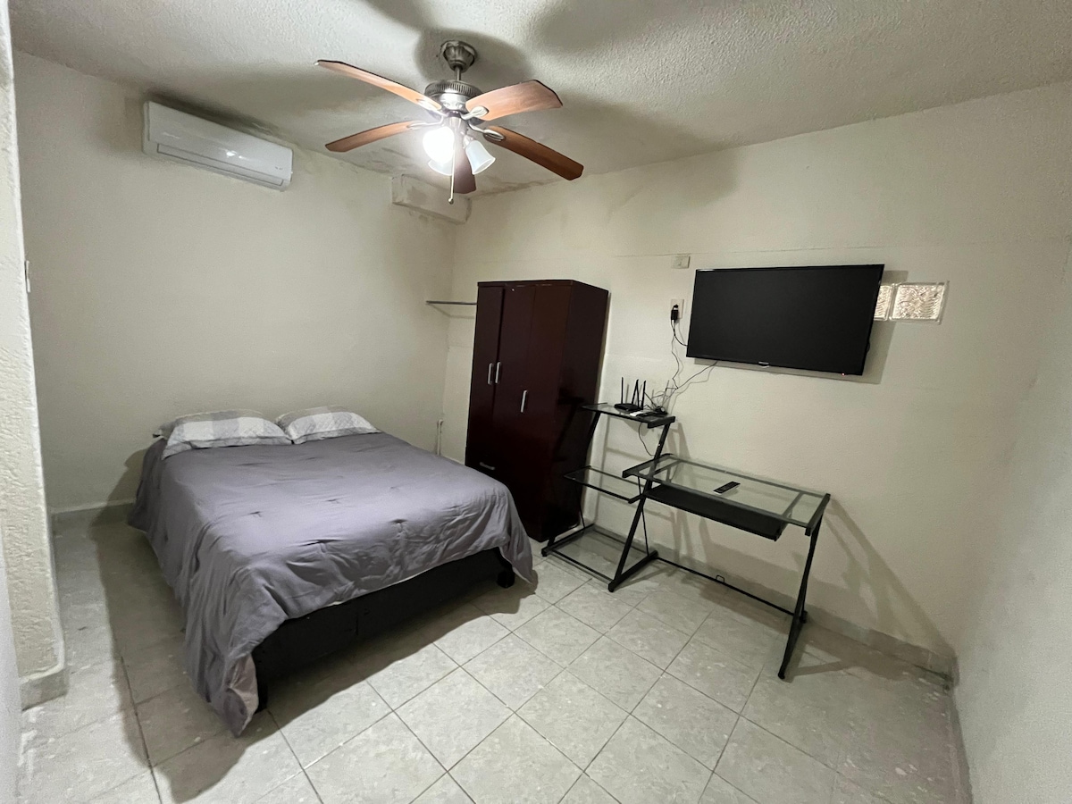 Tận hưởng một căn phòng riêng tư, ấm cúng và đầy đủ chức năng trong khu vực yên tĩnh, an toàn. 🏡 📍 Chỉ cách TEC, Sân vận động Banorte, Fundidora và trung tâm thành phố 10 phút. Giường 🛏️ đầy đủ với phòng tắm riêng ❄️ Điều hòa không khí nóng và lạnh TV thông minh 🖥️ 32" 💻 Bàn làm việc Bếp 🍳 điện, lò vi sóng, tủ lạnh mini và dụng cụ 🍽️ Bàn ăn Lối vào 🚪 độc lập (tầng 1) Đã bao gồm 🧴 khăn tắm, dầu gội đầu và xà phòng