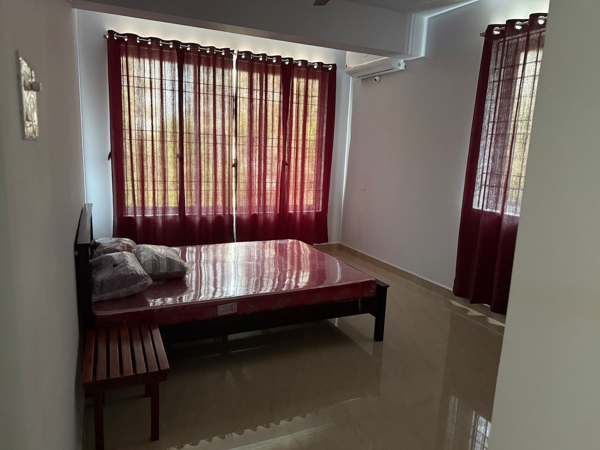 Peaceful hideaway in Navelim near Blasco Executive Centre. Just 5 minutes from Margao Railway Station yet quietly tucked away from city life. Surrounded by lush greenery and mountain views. Modern 1BHK with a cozy living area, comfortable bedroom, clean bathroom, and a fully equipped kitchen with an induction stove. Ideal for couples or families. We’re happy to share trusted references for bike and car rentals if needed. Enjoy calm sunsets and authentic Goan comfort at Blasco Majestic Estates.