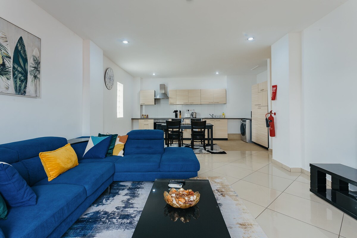 Ngôi nhà thứ hai của bạn ở Accra! • Căn hộ 2 phòng ngủ trong một cộng đồng có cổng nhỏ • Cách sân bay 15 phút lái xe • Cách Accra Mall 15 phút lái xe • Cách ANC Mall và khu vực lân cận 8 phút lái xe nhà hàng • Đi bộ 5 phút đến các cửa hàng tiện lợi và hiệu thuốc • Có sẵn máy phát điện dự phòng