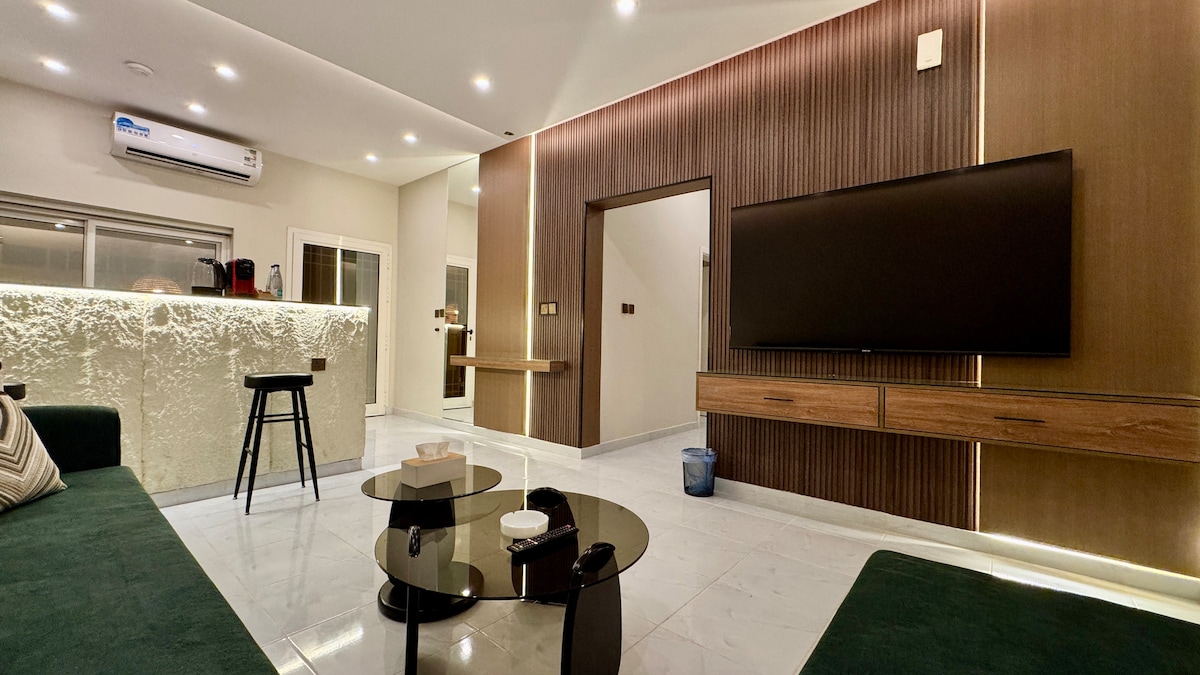 Tận hưởng một kỳ nghỉ thoải mái trong một căn hộ phong cách Nó bao gồm hai phòng, một phòng khách rộng rãi, hai phòng tắm và một nhà bếp đầy đủ tiện nghi. Căn hộ mang đến trải nghiệm giải trí độc đáo với màn hình thông minh hỗ trợ Shahid và Netflix, vì vậy bạn có thể tận hưởng những khoảng thời gian đẹp nhất cùng gia đình hoặc bạn bè. Nằm trong khu phố yên tĩnh và an toàn, chỉ cách Trung tâm thương mại Al Noor 5 phút và Nhà thờ Hồi giáo Nhà tiên tri 10 phút, đây là lựa chọn lý tưởng cho du khách tìm kiếm sự thoải mái và vị trí đặc biệt. Một kỳ nghỉ kết hợp sự thoải mái, yên tĩnh và gần các địa danh quan trọng nhất ở Al Madinah Al Munawwarah